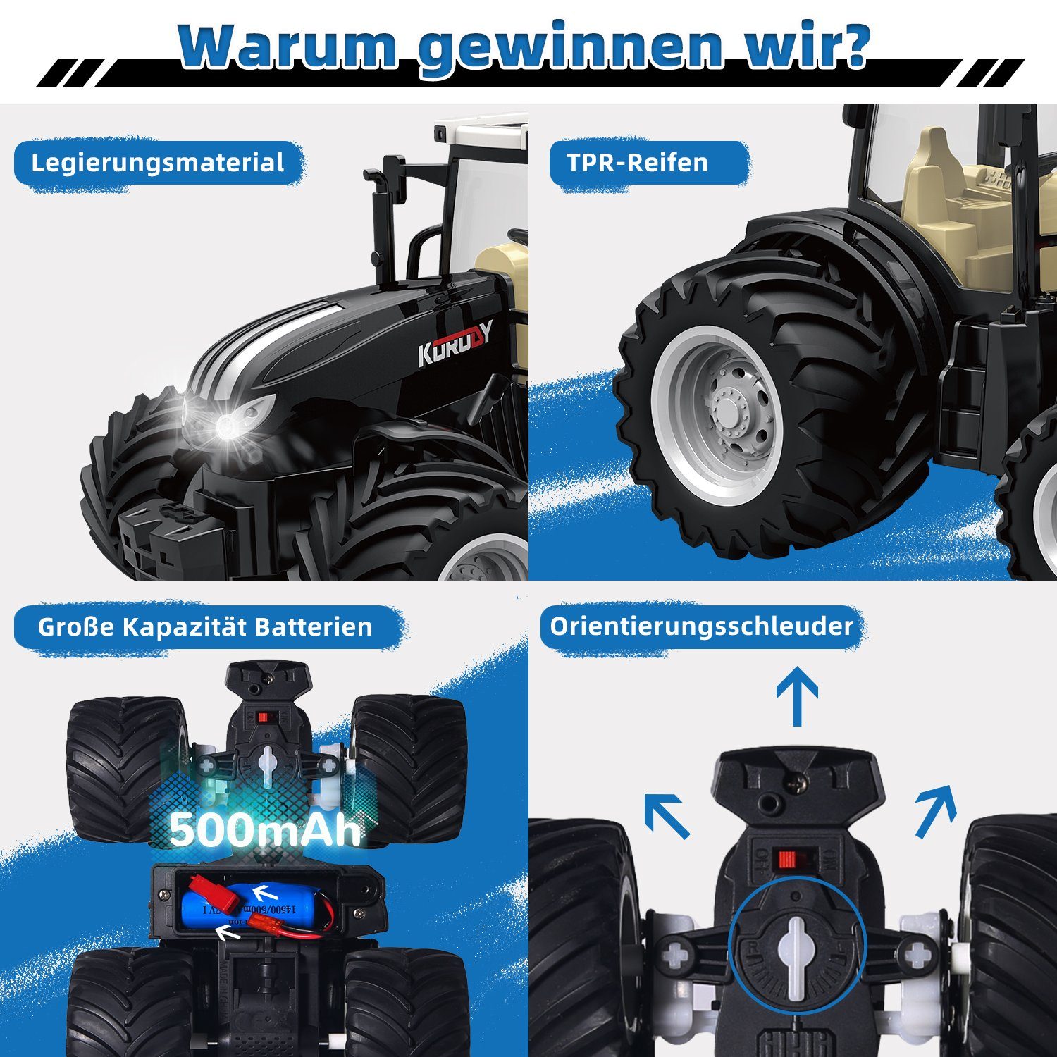 Charmofun RC Traktor Mit Mixer & Licht - Ferngesteuertes Spielzeug Für Kinder Ab 3 Jahren