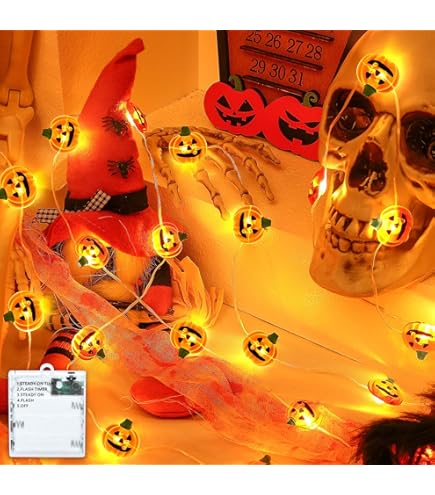 Kürbis Lichterkette 2m Mit Timer - 20 LED, Batteriebetrieben, Warmweiß