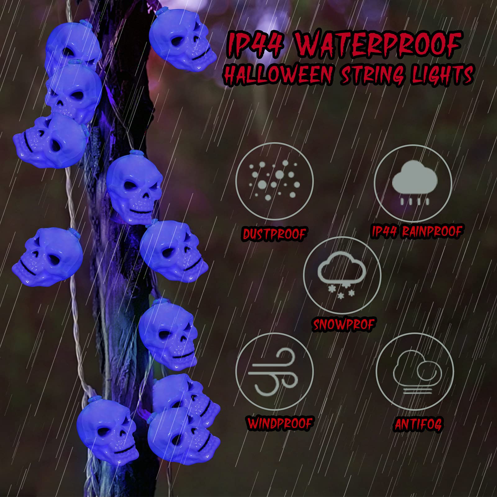 Jojofuny Halloween LED Lichterkette Mit Totenköpfen - 1,5 M Batteriebetrieben Für Party-Deko