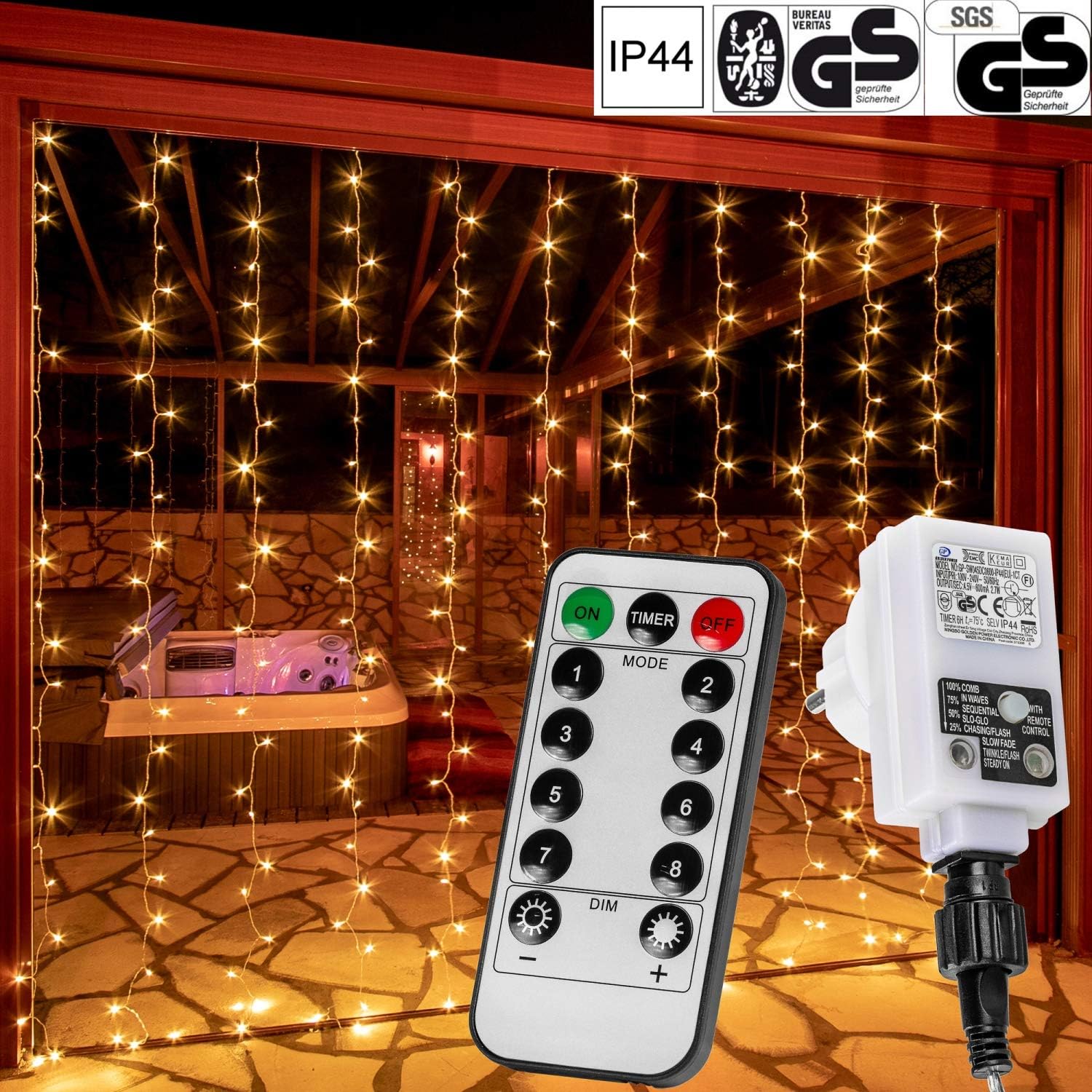VOLTRONIC LED Lichtervorhang 3x3m - 300 LEDs Bunt - IP44 Mit Fernbedienung
