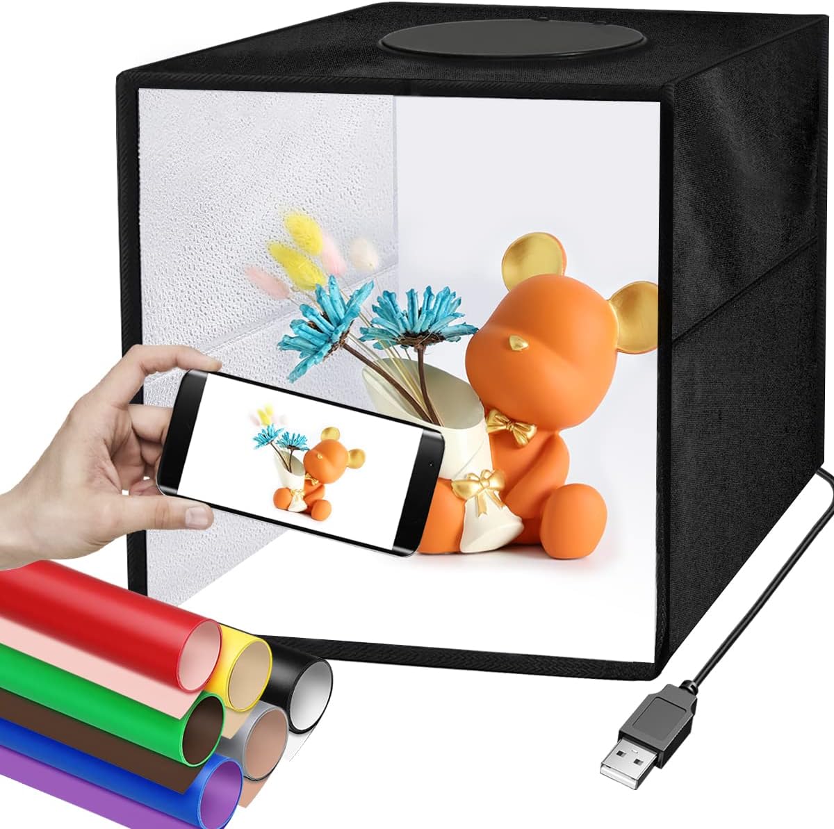 Yanuoda Fotostudio Lichtzelt 30x30cm - Mit 6 Hintergründen & 120 LEDs