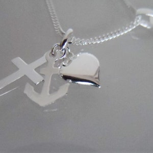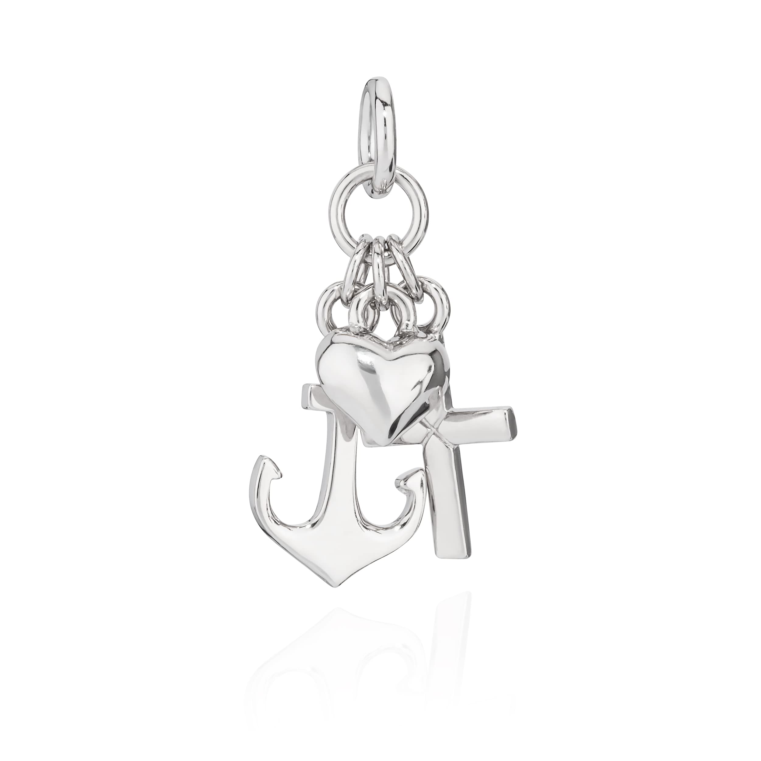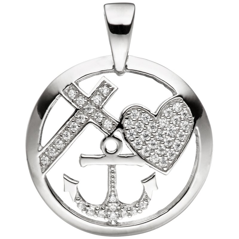 Dieser wunderschöne Anhänger aus 925er Sterlingsilber ist nicht nur ein Schmuckstück, sondern auch ein echter Glücksbringer! Mit den Symbolen für Glaube, Liebe und Hoffnung trägst du immer positive Energie bei dir. Hochglanzpoliert glänzt er herrlich und fällt sofort ins Auge. Perfekt für Damen, Herren und Kinder - ob als täglicher Begleiter oder als besonderes Geschenk zu Anlässen wie Geburtstagen oder Taufen. Die Maße von 15mm Höhe und 12mm Breite sind ideal für eine dezente, aber dennoch sichtbare Wirkung. Die 3,5*2mm große Öse passt zu den meisten Ketten. Ein zeitloses Stück, das durch seine feine Handarbeit besticht und garantiert zum Lieblingsschmuck wird!