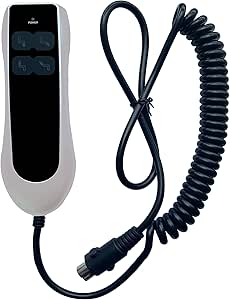 Defekte Steuerung an deiner elektrischen Liege? Dieses Handbedienteil ist die perfekte Lösung! Mit zwei Tasten für Auf- und Abbewegung und 5-poligem Anschluss passt es zu vielen Marken wie Med-Lift, Berkline, Pride und Golden. Das schlanke Design liegt gut in der Hand, und das 1,57m lange Kabel gibt dir genug Bewegungsfreiheit. Kompatibel mit Steuerungen mit und ohne Schnellkupplung. Einfach auszutauschen - kein teurer Techniker nötig! Aus robustem Kunststoff gefertigt, hält die Steuerung lange. Bring deine Liege wieder in Schwung und genieße den Komfort von verstellbaren Sitz- und Liegepositionen. Perfektes Ersatzteil für alle, die ihre elektrische Liege reparieren wollen, ohne gleich ein neues Möbelstück kaufen zu müssen.