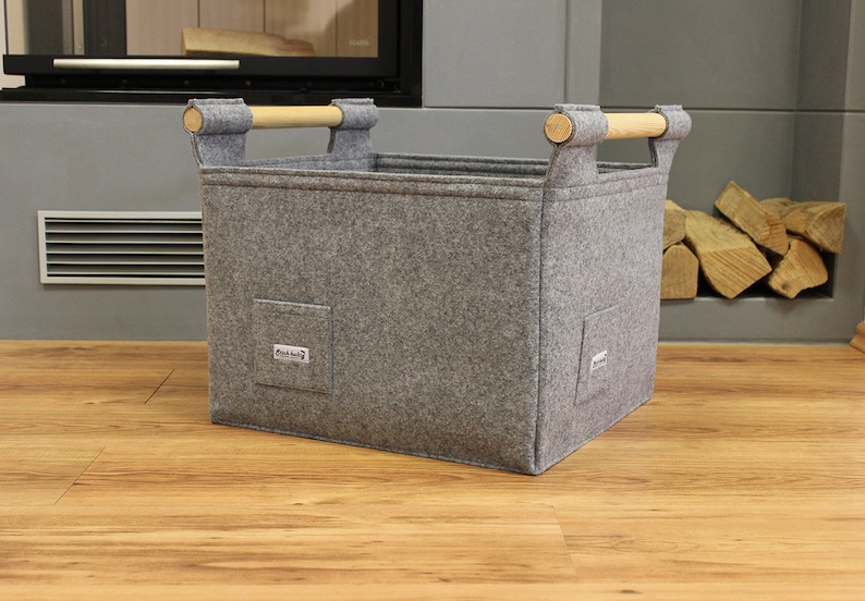 Dieser XL Holzkorb ist der absolute Hammer für alle Kaminbesitzer! Mit 44x31x42cm und 60 Liter Volumen fasst er richtig viel Holz - sogar 30cm lange Scheite passen rein. Aus ultra-stabilem 5mm Filz gefertigt, hält er bis zu 15kg und steht bombenfest. Das coole Design hat eine praktische Vordertasche für Feuerzeug & Streichhölzer und abnehmbare Holzgriffe. Wenn du ihn nicht brauchst, klappst du ihn einfach zusammen - platzsparend verstaut! Aber er kann noch mehr: Als Wäschekorb, für Zeitschriften, Spielzeug oder sogar als Camping-Tasche. Falten nach Transport? Einfach bügeln (mit feuchtem Tuch drauf) und er ist wieder perfekt. Stylisch, praktisch, vielseitig - dieser Korb ist ein echter Allrounder!