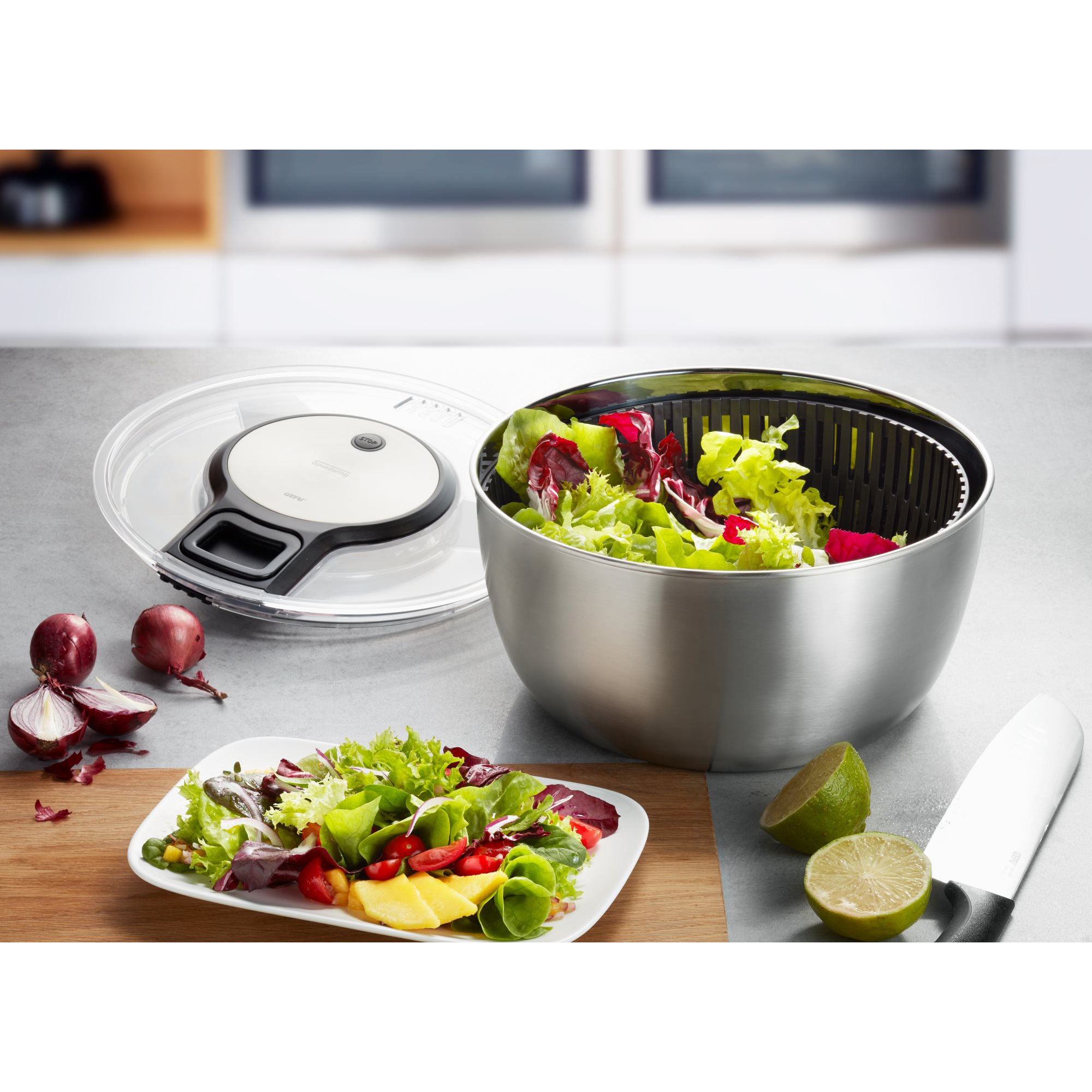 Petyoung Salatschleuder Edelstahl 5 Liter - Mit Rutschfestem Boden