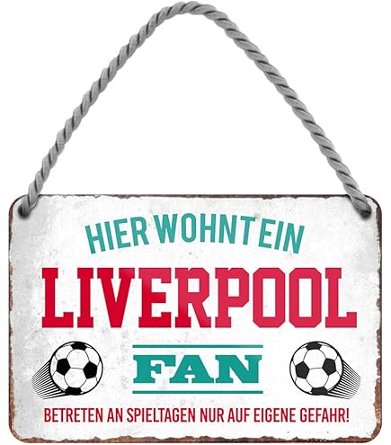 Für echte Liverpool-Fans! Dieses coole Metallschild mit dem berühmten 'You'll Never Walk Alone' Spruch ist ein Muss für jede Fan-Wand. Aus hochwertigem Weißblech, 30x15 cm groß, mit UV-Druck der nicht verblasst. Mit vorgebohrten Löchern für einfaches Aufhängen - ob mit Juteseil, Nägeln oder Klebeband. Das Design zeigt 'Offizielle Anfield Road L4' - einfach authentisch! Perfekt als Geschenk für Männer, Jungs oder dich selbst. Ob im Fan-Zimmer, Büro oder Wohnzimmer - dieses Schild zeigt deine Liebe zu den Reds. You'll Never Walk Alone!