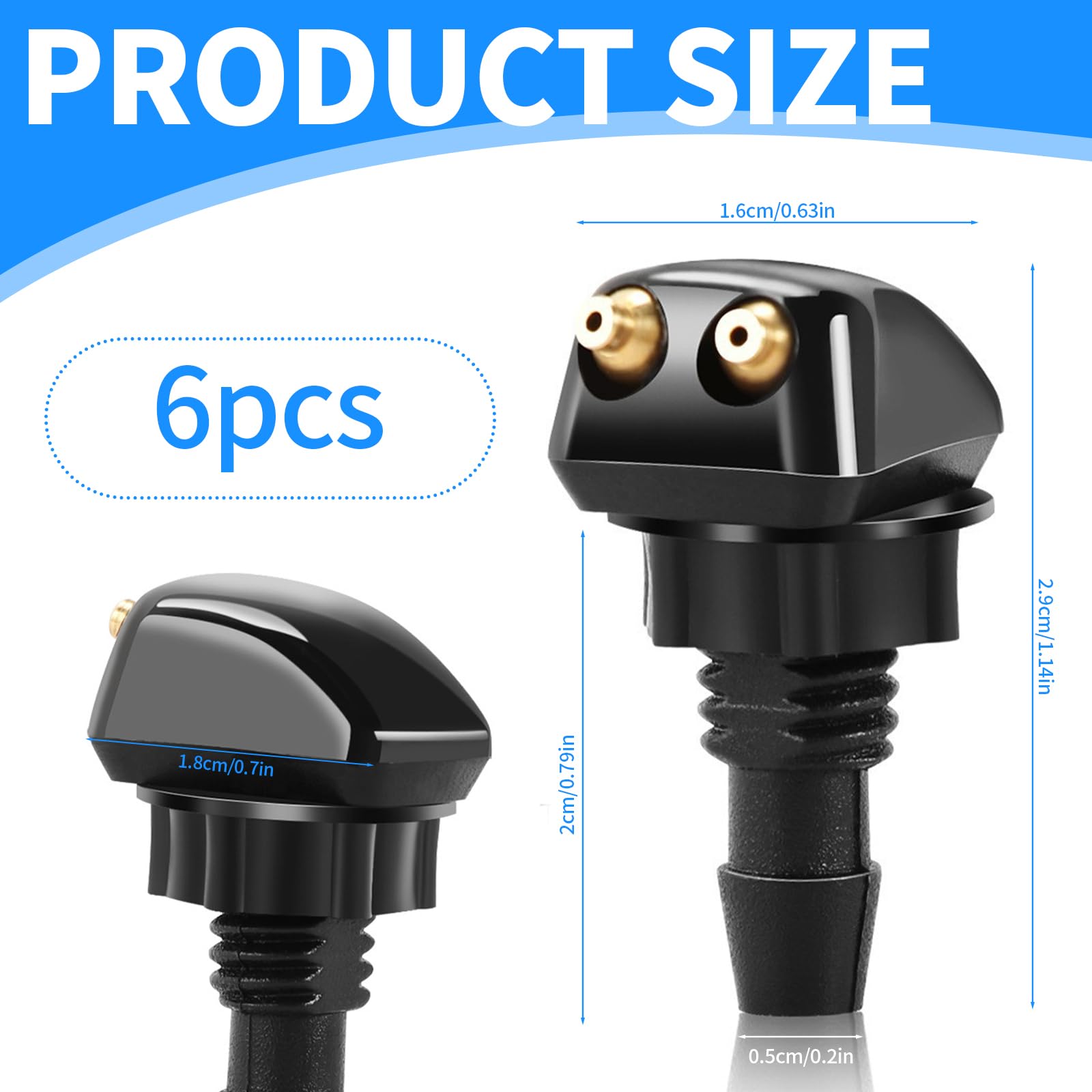 6x Scheibenwaschdüsen 4-Loch Universal | Für 8mm & 9mm Wischerarme | Schwarz