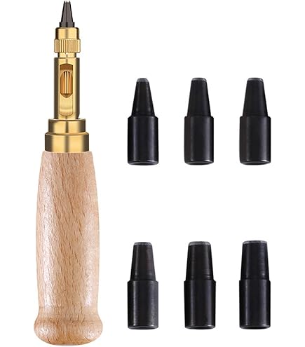 Perfekte Löcher für deine Lederprojekte! Dieses 10-teilige Locheisen Set aus robustem Stahl meistert jede Lederarbeit. Größen von 0,5mm bis 5mm - für alle Anforderungen geeignet. Einfach aufsetzen, mit Hammer drauf - schon hast du saubere, präzise Löcher. Ideal für Lederhandwerk, Gürtel, Taschen, Jacken oder auch Kunststoff und Gummi. Die langen Griffe liegen super in der Hand und geben dir perfekten Halt. Tipp: Immer auf weicher Unterlage arbeiten und die Werkzeuge gelegentlich ölen. Von Anfängern bis Profis - dieses Set ist dein zuverlässiger Begleiter für alle Bastelprojekte. Mach deine Lederarbeiten professionell!