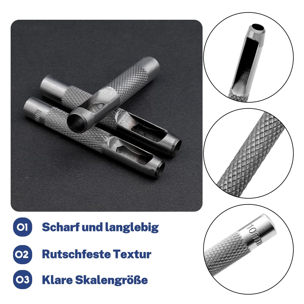 Locheisen Set 10-teilig - Stahl Hohlstanzer Für Leder 0,5-5mm