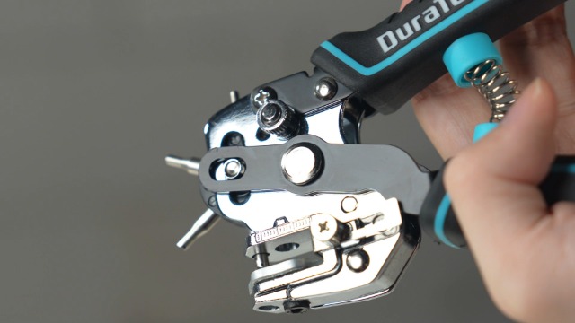 Perfekt für Lederarbeiten! Dieser robuste Lochstanzer macht saubere Löcher in Leder bis 4mm Dicke. Mit 3 austauschbaren Stanzköpfen (3/4/5mm) und Millimeterskala für präzise Abstände. Ergonomischer Griff für ermüdungsfreies Arbeiten. Ideal für Gürtel, Armbänder, Taschen und mehr. Aus hochwertigem Stahl - hält lange. Ein Muss für jeden Bastler und Lederhandwerker!