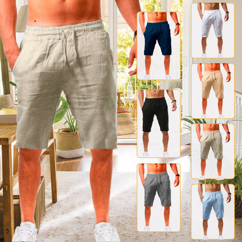 Herren Leinenhose Lockere Passform - Baumwoll-Leinen Hose Mit Taschen Für Freizeit