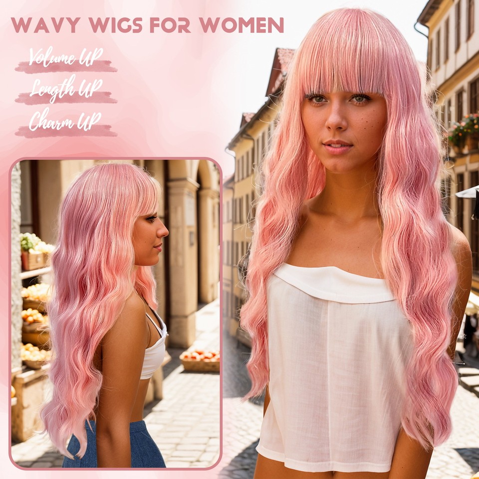 Lockige Perücke 70cm Rot-rosa - Kanekalon Fiber Mit Pony Für Cosplay & Daily Use