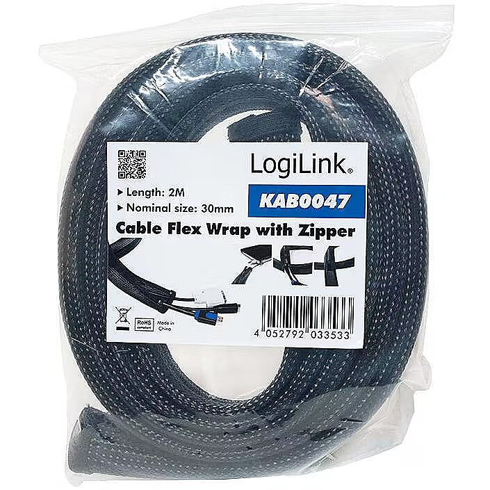 LogiLink Kabelschutz-Schlauch Mit Reißverschluss, 2m – Flexibel & Robust