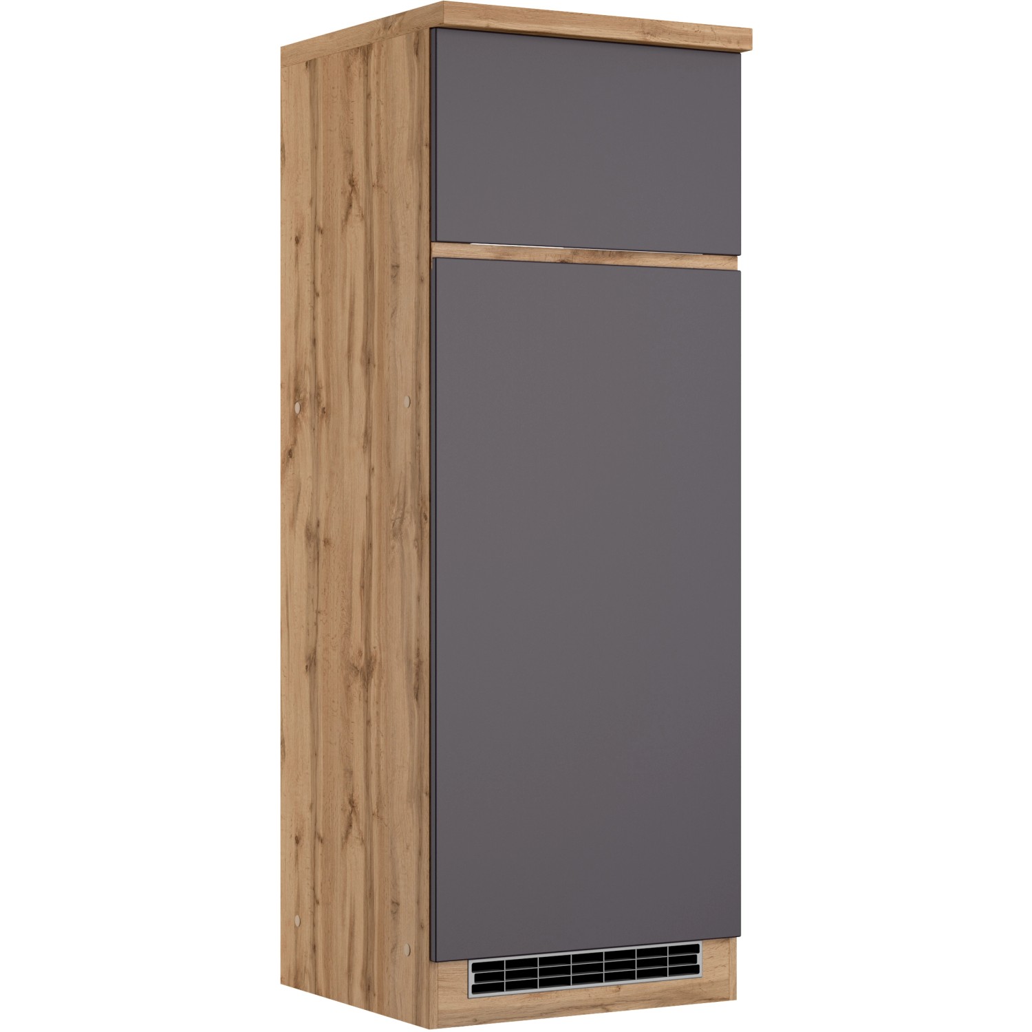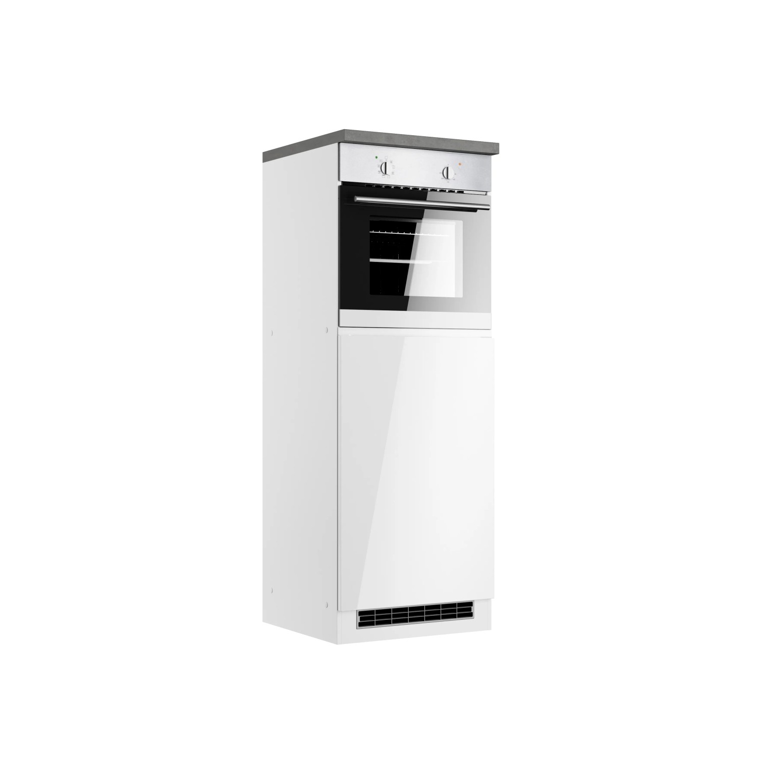 Lomadox Umbauschrank Für Kühlgefrierkombination 60cm - Hochglanz Weiß Mit Eiche Arbeitsplatte