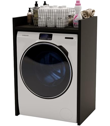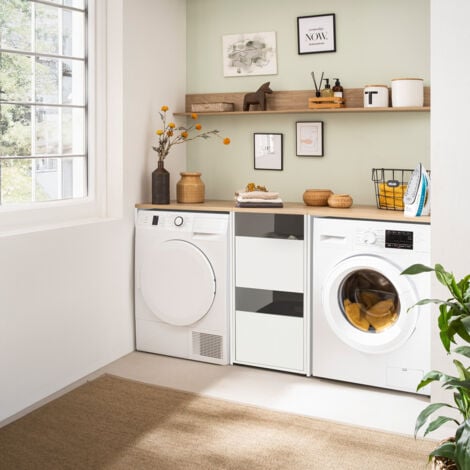 Lomadox Waschmaschinenumbau Weiß Mit Eiche - Wäscheschrank Mit Putzmittelschrank