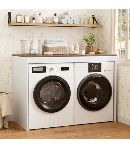 Ordnung und Stil für deine Waschküche! Dieser Waschmaschinenumbau von Lomadox in weiß mit Eiche-Optik bringt System in deinen Hauswirtschaftsraum. Das Set besteht aus drei Teilen: Einem Waschmaschinenumbauschrank (67,1x96x60cm), einem abschließbaren Unterschrank (67,1x60x60cm) für Putzmittel und einem geräumigen Wäscheschrank mit drei Türen (45,1x154,7x60cm). Hergestellt aus qualitativen Spanplatten mit Melaminharzbeschichtung - pflegeleicht und langlebig. Die Türen haben Softclose-Funktion und schließen sanft und leise. Besonders praktisch: Die Einwurfschächte im Wäscheschrank ermöglichen einfaches Sortieren der Wäsche. Die höhenverstellbaren Füße (1,8-2,7cm) sorgen für perfekten Stand auch auf unebenen Böden. Einfach selbst montieren mit der klaren Anleitung - geliefert wird alles zerlegt im Paket. Schaff dir endlich Ordnung in der Waschküche und versteck Waschmaschine, Trockner und Putzmittel hinter dieser schicken Front!