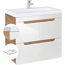 Stylisher Waschtisch für dein Traumbad! Der Lomadox Waschtisch mit 61,5 cm Breite kommt im modernen Weiß mit Eiche-Optik und gerillter Front. Inklusive Keramik-Aufsatzbecken in weiß-marmorierter Optik. Aus hochwertigen Materialien: MDF-Fronten, E1-Spanplatte, melaminbeschichtet. Mit Soft-Close Schubladen für sanftes Schließen. Metallbeschläge und FSC-zertifiziert. Lieferumfang: Waschbeckenunterschrank, Waschtischplatte ohne Lochbohrung, Keramikwaschbecken. Gesamtmaße: 61,5x74,7x46,5 cm. Einfache Selbstmontage mit bebilderter Anleitung. Armatur und Siphon nicht im Lieferumfang - kannst du nach deinem Geschmack auswählen. Perfekt für wandhängende Montage. Mach dein Badezimmer zum Wohlfühl-Ort mit diesem qualitativ hochwertigen Waschtisch!