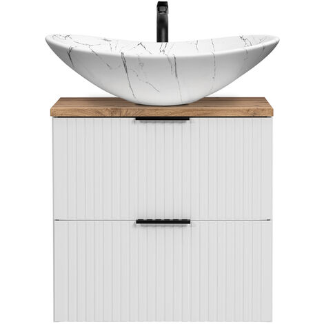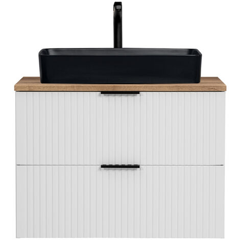 Lomadox Waschtisch 80cm Mit Aufsatzbecken - Weiß Mit Eiche, Gerillte Front