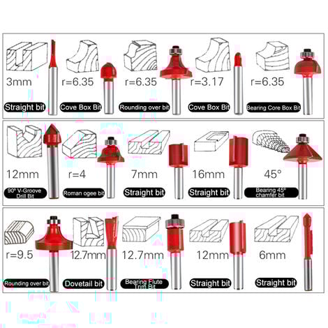 Alles drin für deine Holzbearbeitungs-Projekte! Dieses 15-teilige Fräser-Set für Oberfräsen mit 8-mm-Schaft enthält Nutfräser, Abrundfräser, Falzfräser, V-Nuten-Fräser und mehr. Aus 45# Stahl und YG8-Legierung – langlebig und nachschärfbar. Jeder Fräser ist im Holzkoffer sicher verstaut und klar beschriftet. Perfekt für Holz, MDF, Sperrholz – aber Achtung: nicht für Metall! Einfach den passenden Fräser wählen und saubere, präzise Ergebnisse erzielen.