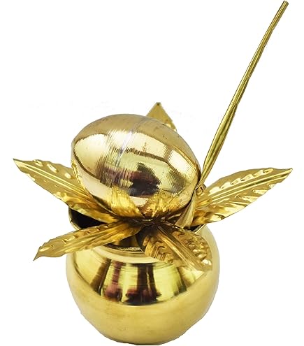 Für spirituelle Zeremonien und traditionelle Feste: Dieser wunderschöne Kalash Krug aus purem Messing ist ein wichtiges Utensil für Pooja-Rituale. Maße: 3x2 Zoll, Gewicht: 65 Gramm. Verwendet für Diwali, Navratri, Hochzeiten, Haussegnungen und andere religiöse Anlässe. Kann auch für die Aufbewahrung von Wasser verwendet werden. Ein perfektes Geschenk für besondere Anlässe oder zur Dekoration des Hausaltars. Hergestellt aus hochwertigem Messing in goldener Farbe. Ein traditionelles Stück das Eleganz und Spiritualität in dein Zuhause bringt.