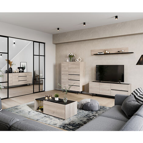 Wow, dieses TV-Lowboard von MYDTT ist ja mal ein richtiger Hingucker! Mit 180cm Länge bietet es reichlich Platz für deinen Fernseher und alle Medientechnik. Die Kombination aus Eichenoptik und anthrazitfarbenen Akzenten sieht einfach mega stylisch aus. Das grifflose Design gibt dem Schrank eine super moderne Note - einfach an den schrägen Kanten ziehen und schon öffnen sich Türen und Schubladen. Innen findest du 2 Türen, 2 Schubladen und 2 offene Fächer - perfekt organisiert! Die schwarzen Metallfüße geben stabilen Halt und passen super zum zeitgenössischen Look. Das integrierte Kabelmanagement an der Rückseite hält alle Kabel ordentlich versteckt. Wird in 2 Paketen geliefert - praktisch für den Transport. Mach dein Wohnzimmer zum Wohlfühl-Ort mit diesem qualitativ hochwertigen TV-Schrank!