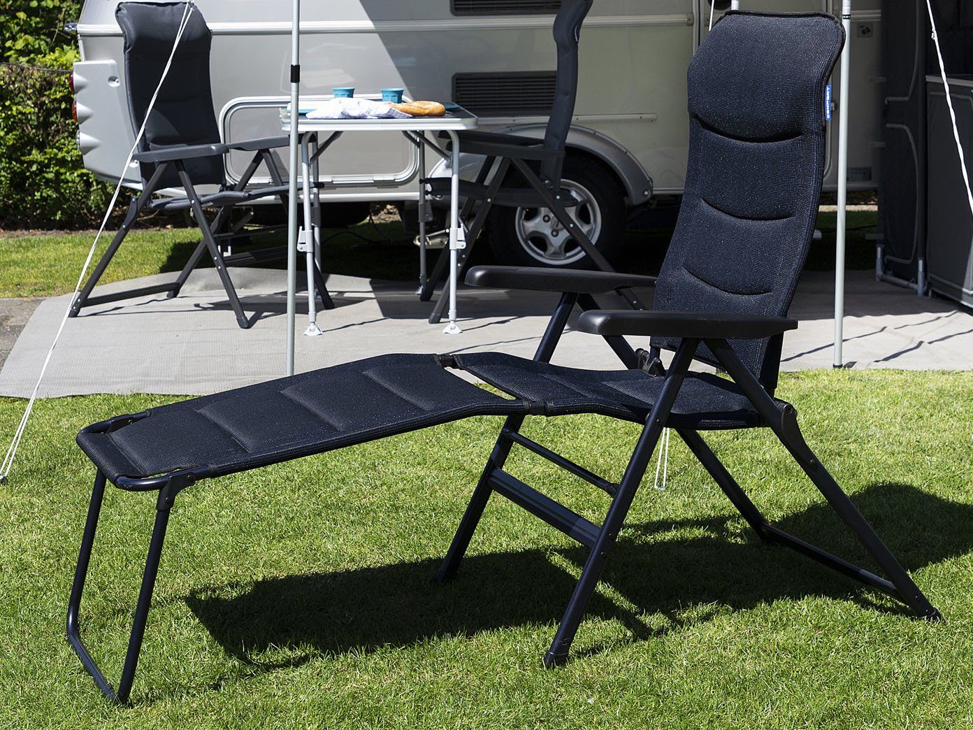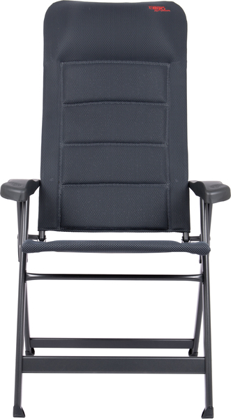 Die gepolsterte Kopfstütze und der textile Bezug sorgen für maximalen Komfort. Das leichte Aluminium-Gestell trägt bis zu 110kg und ist trotzdem einfach zu transportieren. Zusammengeklappt ist der Stuhl platzsparend und leicht.