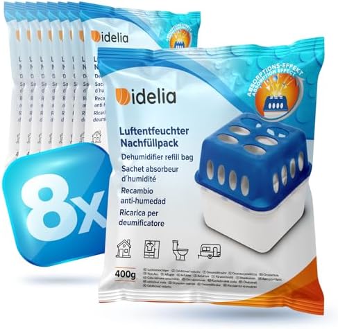 Schluss mit feuchter Luft und muffigem Geruch! Dieses praktische Luftentfeuchter-Set mit 4 Boxen und 8 Nachfüllpacks sorgt für ein angenehmes Raumklima. Jede Box deckt ca. 15m² ab, zusammen also perfekt für Räume bis 60m². Die kompakten Boxen (13x13x11cm) passen in jede Ecke - ob im Keller, Bad, Waschküche oder Kleiderschrank. Das Beste: Sie arbeiten komplett ohne Strom und sammeln die überschüssige Feuchtigkeit einfach im integrierten Behälter. So sparst du Energie und schonst die Umwelt. Einfach die Boxen platzieren und die Nachfüllpacks austauschen, wenn sie voll sind. Perfekt für alle, die Probleme mit Schimmel oder Feuchtigkeit haben. Einfach hinstellen und durchatmen!