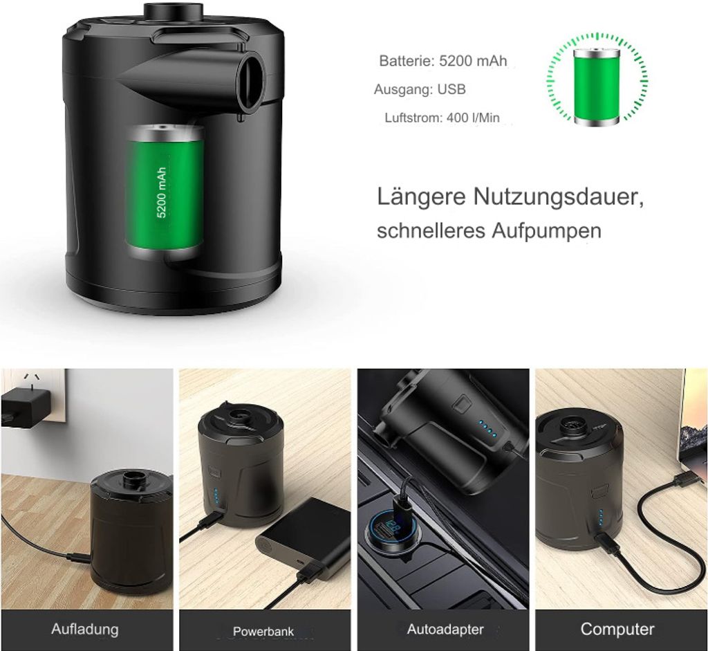 Elektrische Luftpumpe Mit Akku - 5200mAh Für Boote, Luftmatratzen & Pool