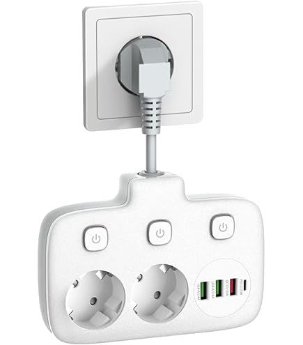 Endlich genug Steckdosen und USB-Anschlüsse! Diese praktische LustLocke Steckdosenleiste hat alles, was du brauchst: 2 normale Steckdosen, 2 USB-A und 2 moderne USB-C Anschlüsse. Perfekt fürs Homeoffice, Wohnzimmer oder die Küche - einfach einstecken und sofort alle deine Geräte laden. Mit 3250 W Leistung und Überspannungsschutz bist du auf der sicheren Seite. Das coole LED-Licht mit 3 Farbmodi hilft dir, die Steckdose auch im Dunkeln zu finden. Super kompakt und wandmontierbar - ideal für kleine Räume. Aus feuerfestem PC/ABS-Material und mit 100% Kupferleitungen für maximale Sicherheit. Einfach anschließen und sich über endlich genug Anschlüsse freuen! Ob für Laptop, Smartphone, Tablet oder Lampe - hier findest du immer Platz.