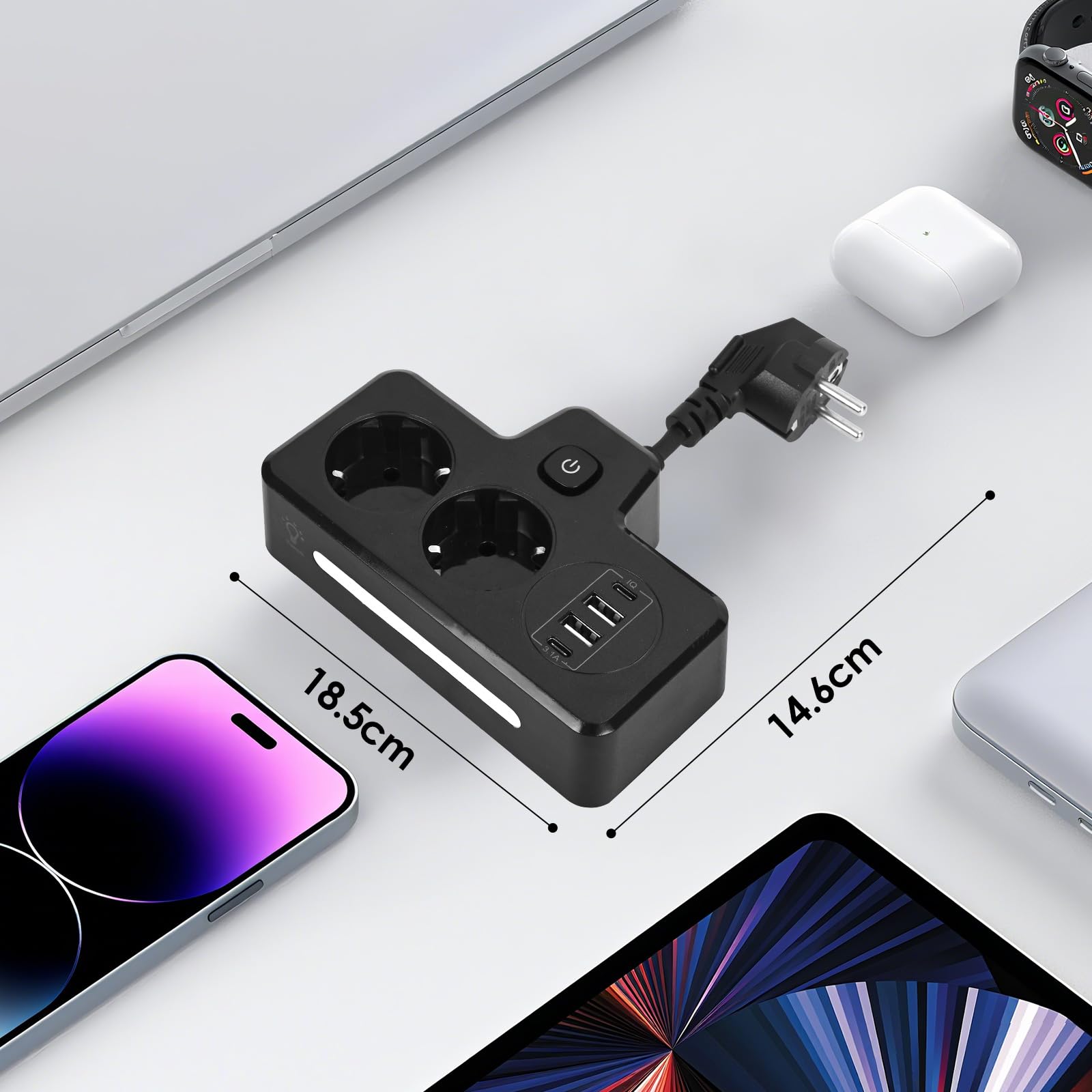 LustLocke 6-in-1 Steckdosenleiste - 2 USB-C + 2 USB-A + 2 Steckdosen