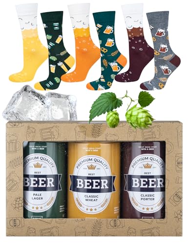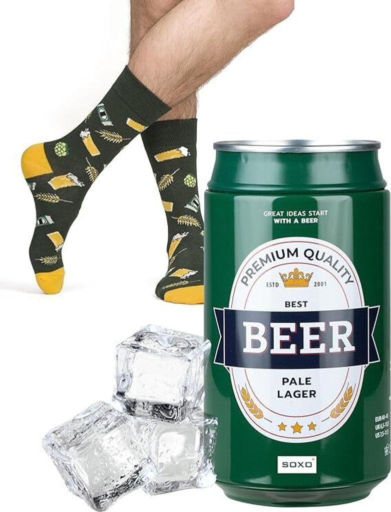 Prost mit den Füßen! Diese lustigen Biersocken sind der absolute Hit für jeden Bier-Fan! Aus weicher Baumwolle - atmungsaktiv und super bequem. Das coole Design: Linke und rechte Socke haben unterschiedliche Bierflaschen-Motive - total witzig! In Universalgröße 36-44 passen sie den meisten Männern und Frauen. Perfekt fürs Oktoberfest, aber auch im Alltag ein echter Hingucker! Ob zum Sport, im Büro oder auf der Couch - diese Socken sorgen für gute Laune. Das ideale Geschenk für Geburtstage, Weihnachten oder einfach so! Einfach anziehen und Bier-Feeling genießen - auch ohne Maßkrug!