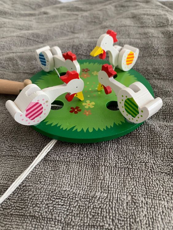 Kikeriki! Dieses niedliche Hühner-Mobile von Goki bringt Leben ins Kinderzimmer. Mit 29x31cm Größe ist es perfekt über dem Bettchen oder der Wickelkommode aufgehoben. Die lustigen Hühner in bunten Farben drehen sich sanft im Luftzug und faszinieren dein Baby. Aus hochwertigen Materialien gefertigt, komplett kindersicher. Fördert die visuelle Wahrnehmung und beruhigt beim Einschlafen. Einfach aufhängen und die niedlichen Hühner tanzen lassen. Von der Qualitätsmarke Goki - seit Jahren bekannt für pädagogisch wertvolles Spielzeug. Mach das Kinderzimmer deines Lieblings noch gemütlicher!