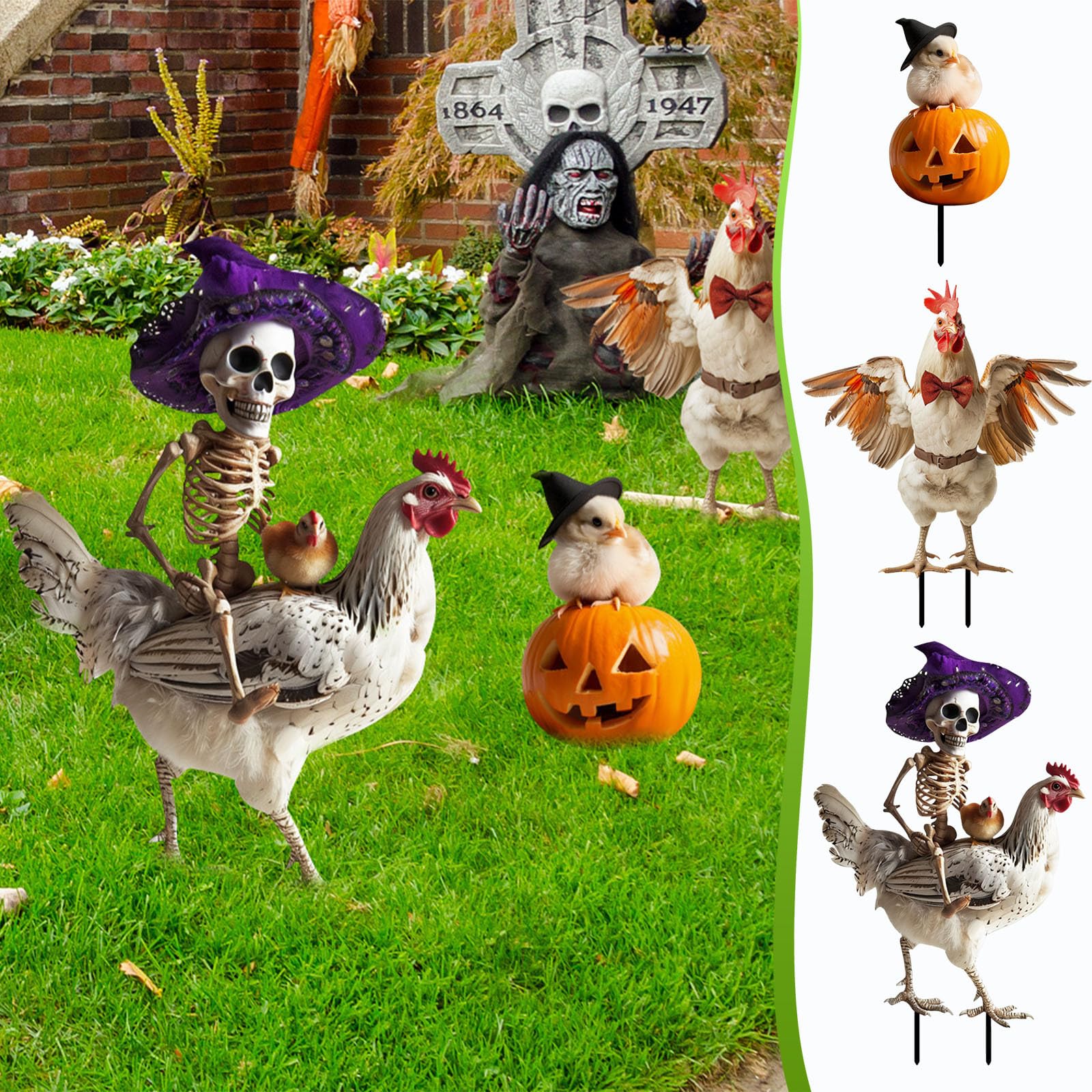 Lustige Metall-Hühnerfigur Für Garten - Wetterfeste Halloween & Herbstdeko Mit Erdspieß