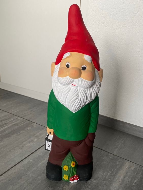 Dieser süße Gartenzwerg mit seinem langen Bart und dem spitzen grünen Hut bringt richtig Leben in deinen Garten! Mit 61 cm Höhe ist er groß genug, um gut sichtbar zu sein, aber nicht zu aufdringlich. Aus hochwertigem Kunstharz gefertigt, hält er problemlos jedem Wetter stand - ob Sonne, Regen oder sogar ein bisschen Schnee. Die UV-beständige Farbe verblasst nicht, sodass dein Zwerg auch nach Jahren noch fröhlich aussieht. Der stabile Sockel sorgt dafür, dass er nicht umkippt, und mit den beiliegenden Dübeln kannst du ihn zusätzlich sichern. Perfekt für den Garten, die Terrasse oder auch als Deko im Haus. Ein tolles Geschenk für Zwergen-Liebhaber, Kinder oder einfach für dich selbst. Dieser freundliche Geselle mit seinem lustigen Lächeln vertreibt garantiert jedes Trübsal!