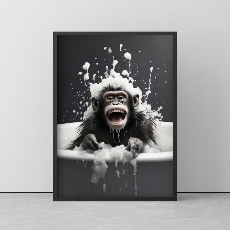 Lustiger Affen-Duschvorhang - Schwarz-weiß Design 183x183 Cm