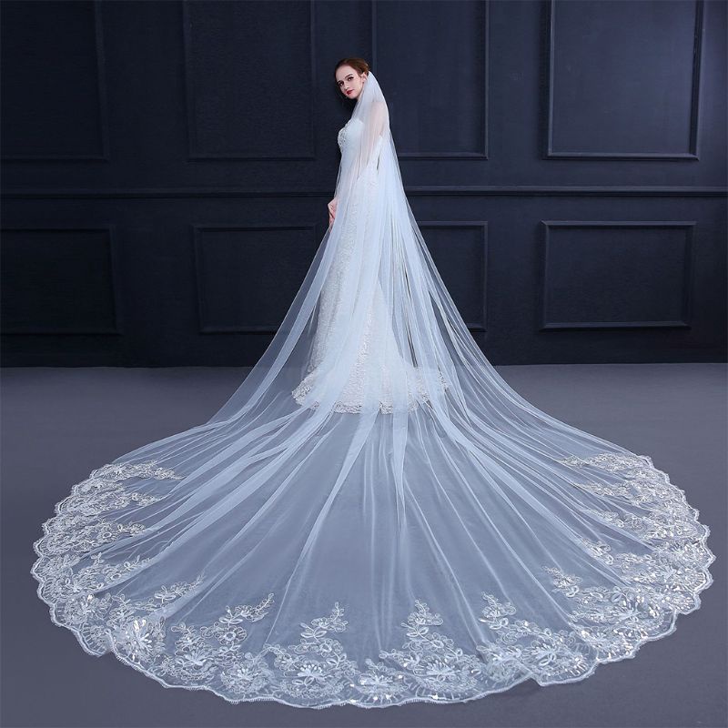 Cathedral Hochzeitsschleier 3m - Luxus Schleier Mit Sternenhimmel Pailletten