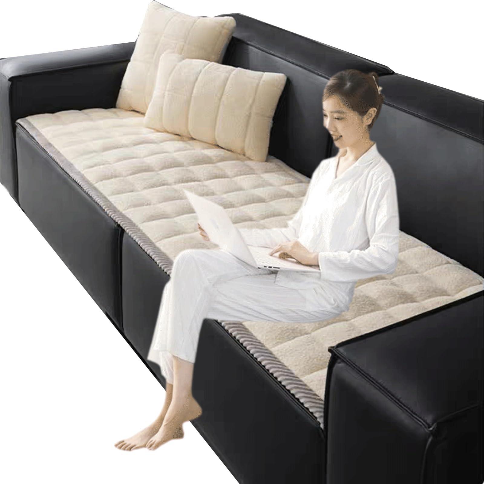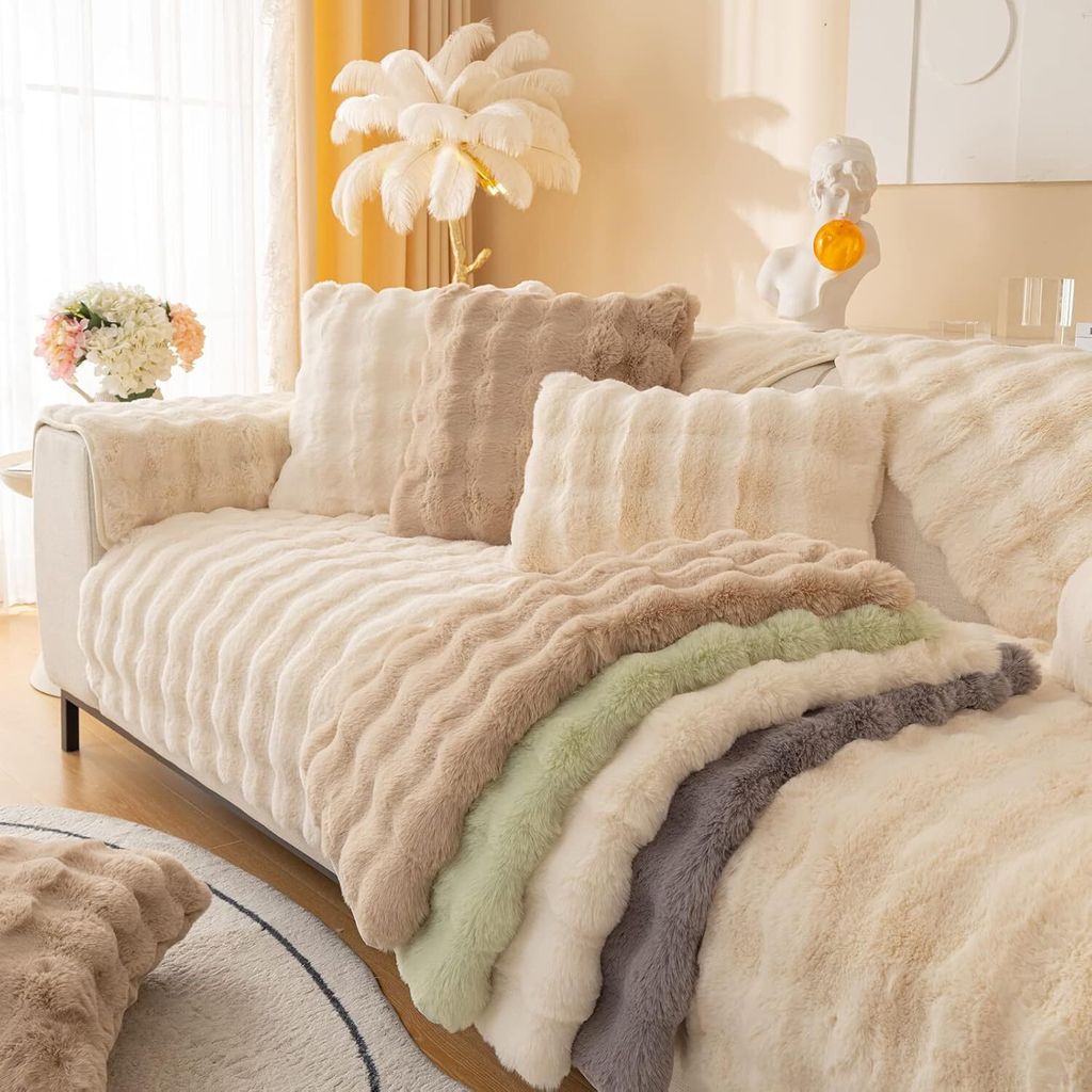 Luxus Sofakissen Bezug - Kaninchenfell-Optik Plüsch Bezug Mit Anti-Rutsch Für 1-4 Sitzer
