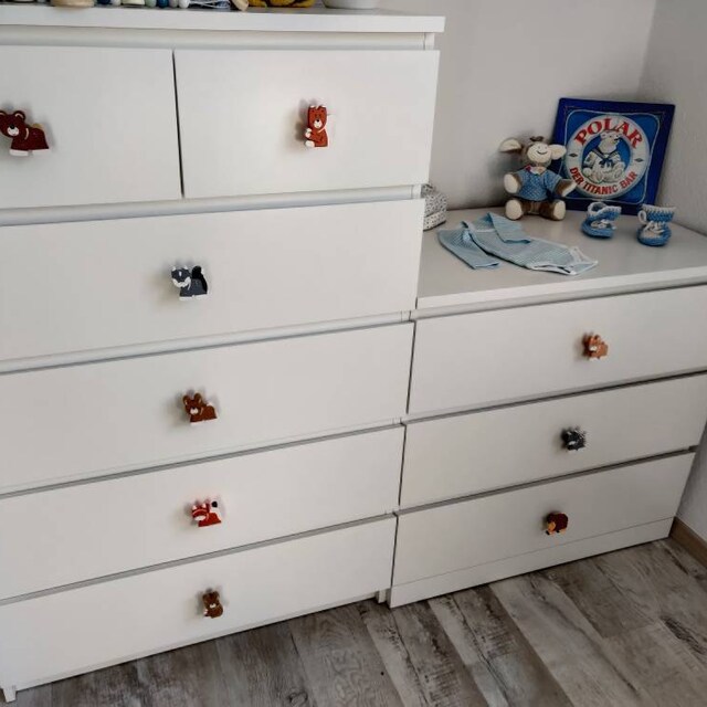 8 Holzknäufe Waldtiere - Weiße Möbelgriffe Für Schränke & Kommoden