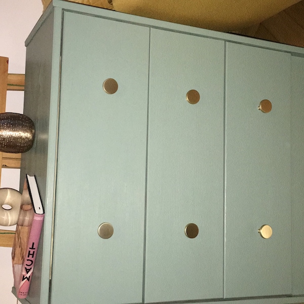 Diese Möbelgriffe sind einfach der Hammer! Das gebürstete Gold mit Perlmutt-Einsatz in Weiß sieht mega edel aus und verleiht deinen Möbeln sofort einen luxuriösen Touch. Mit 31mm Durchmesser und 25mm Tiefe passen sie perfekt in die Hand. Die Montage ist kinderleicht - einfach die beiliegenden Schrauben (M4 x 22mm und 25mm) durch die Schrankfront und festdrehen. Passt für Fronten von 15-22mm Stärke. Ob für die Kommode, den Kleiderschrank oder die Küche - diese Griffe machen aus alten Möbeln echte Hingucker! Designed in Berlin mit Liebe zum Detail.