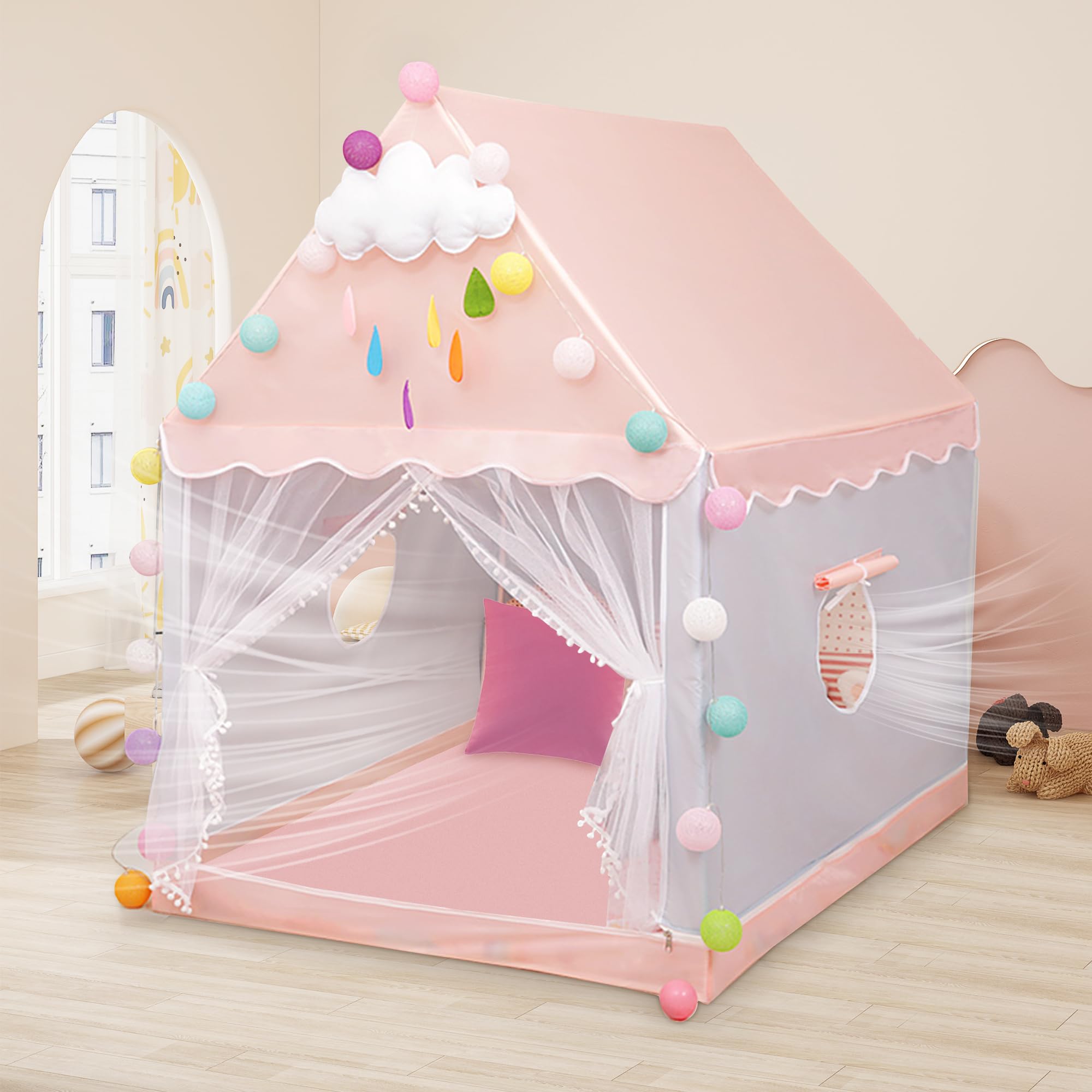 Regenbogenfrosch Spielzelt Für Mädchen - 128cm Pink Zelt Mit LED-Lichtern