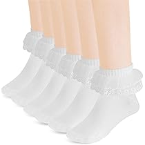 Telooco Rüschensocken Mädchen - 3 Paar Weiß Mit Spitze 18-20cm