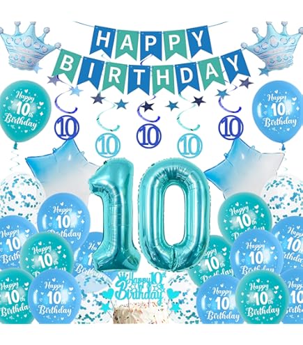 10. Geburtstag Dekoration Für Mädchen - Blaugrüne Party Deko Mit Banner & Ballons