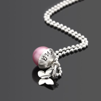 Butterfly Kinderkette Mädchen - Echt Silber 925 Herz-Anhänger Mit Kristall | Längenverstellbar & Anlaufschutz