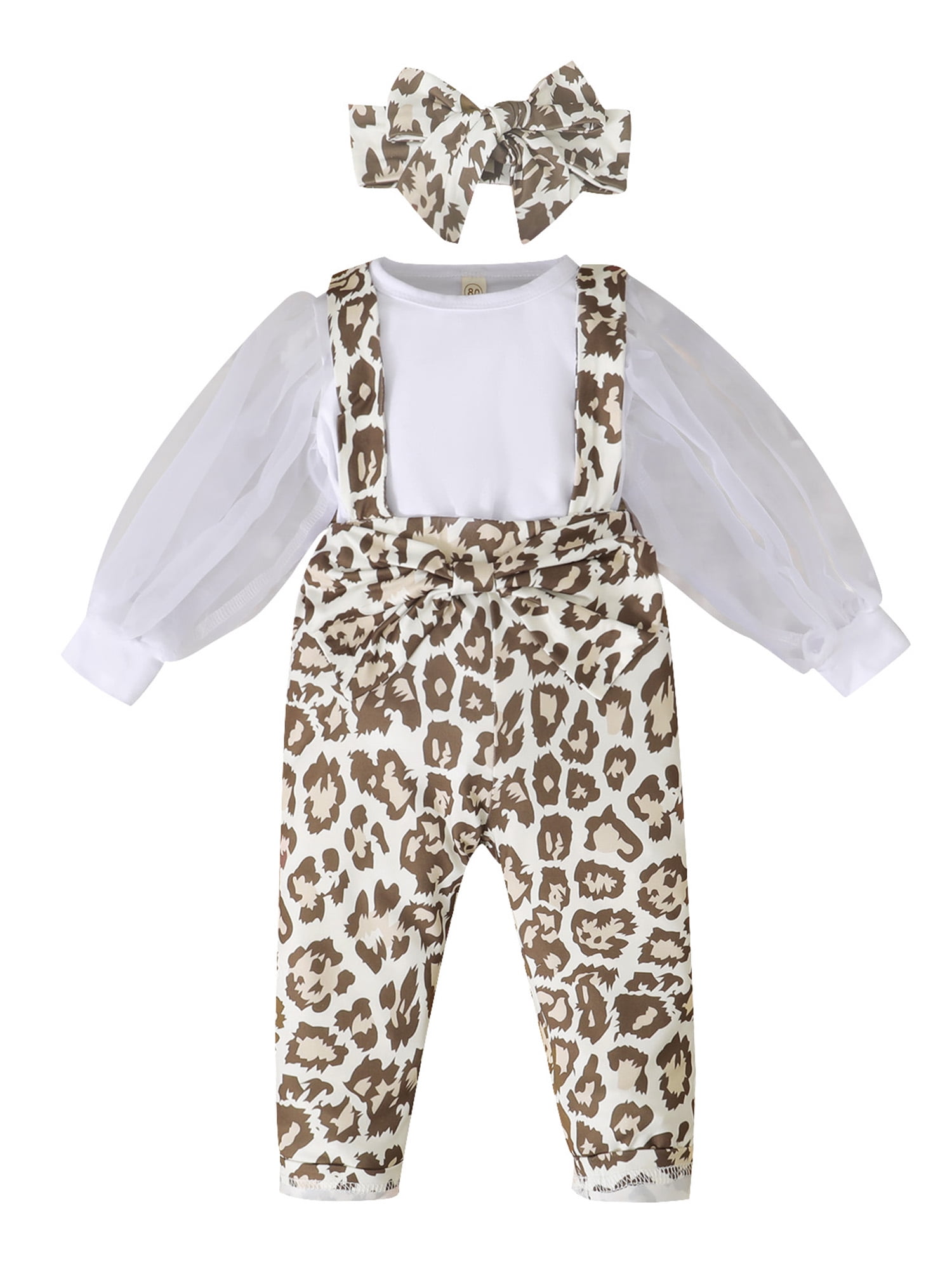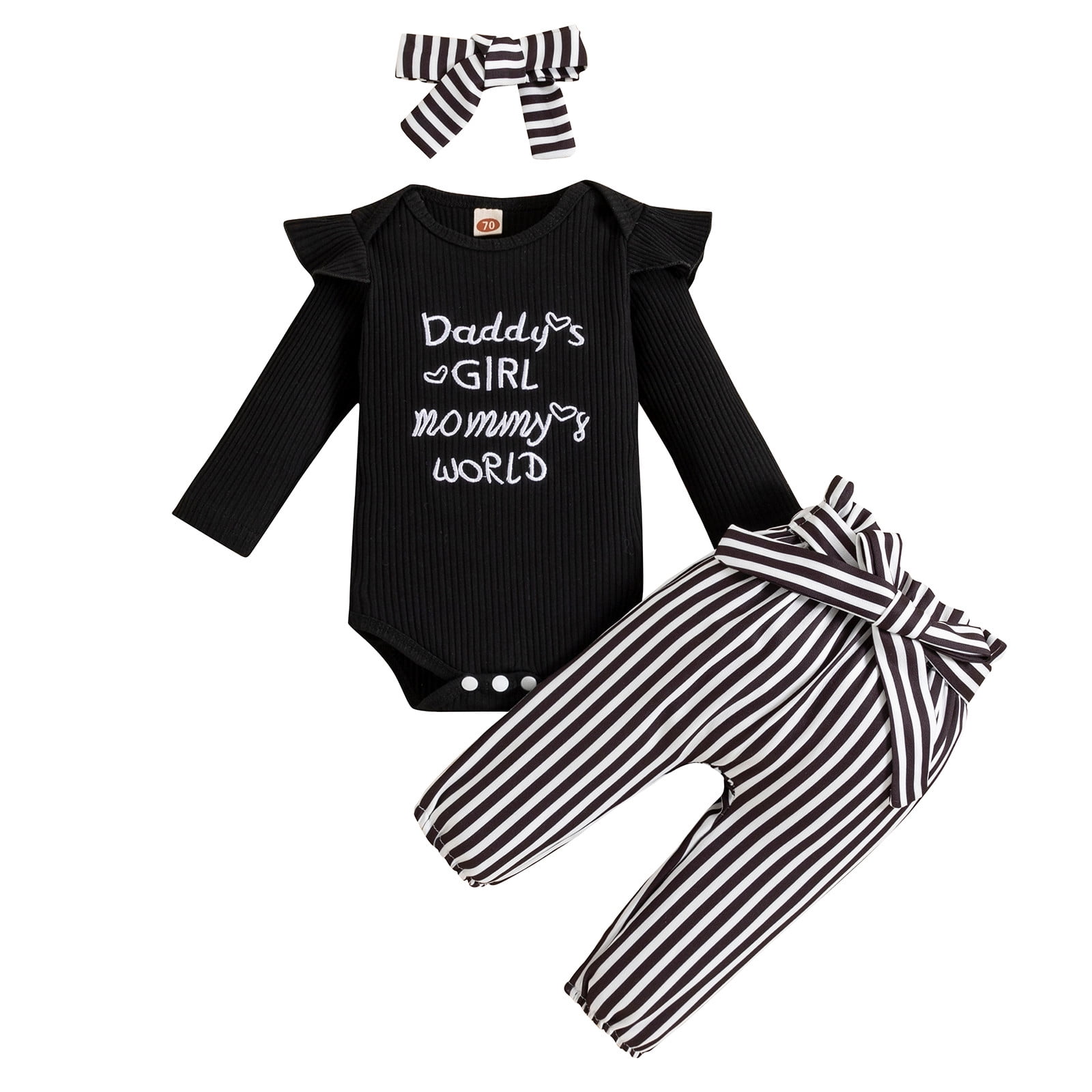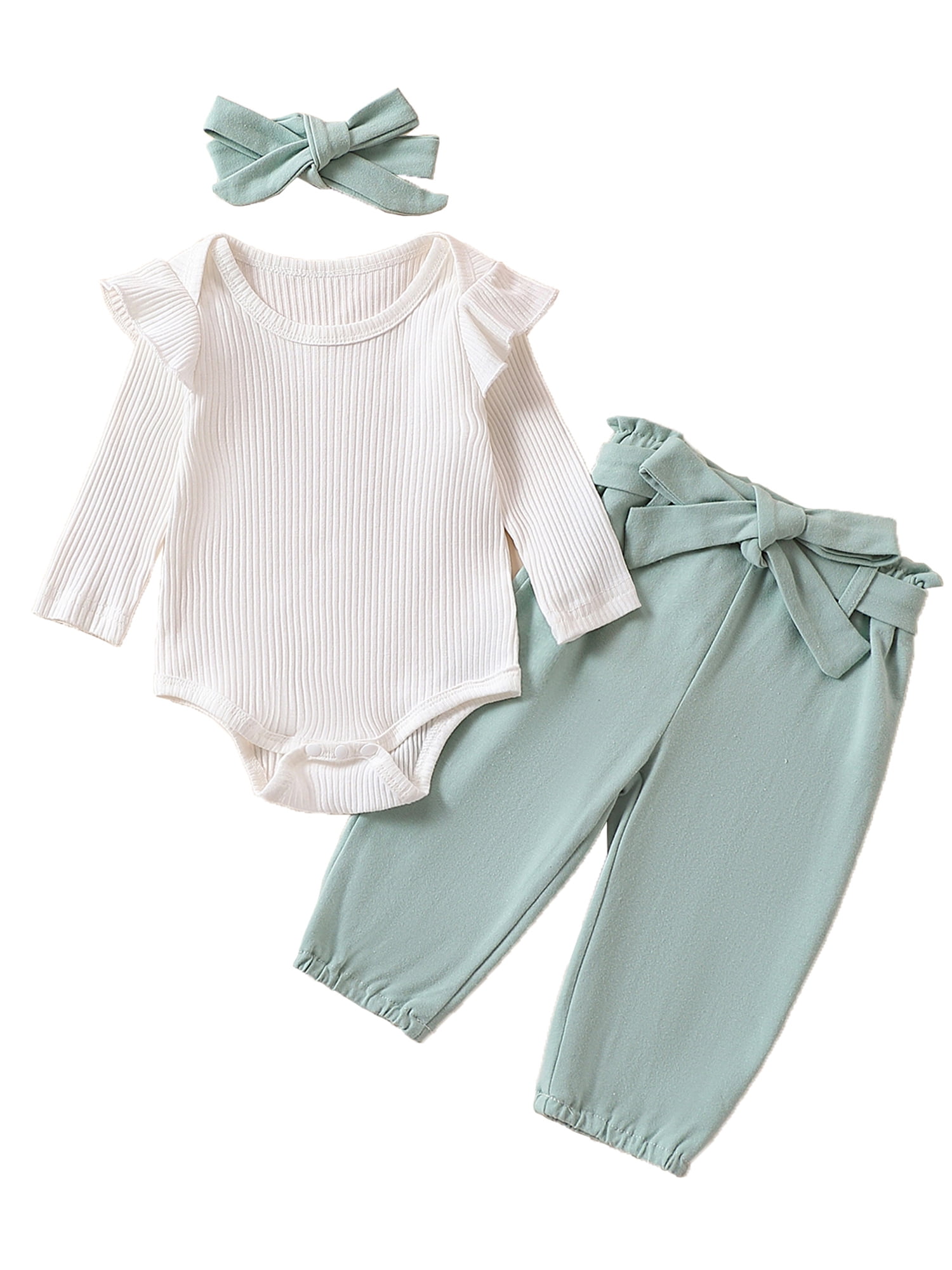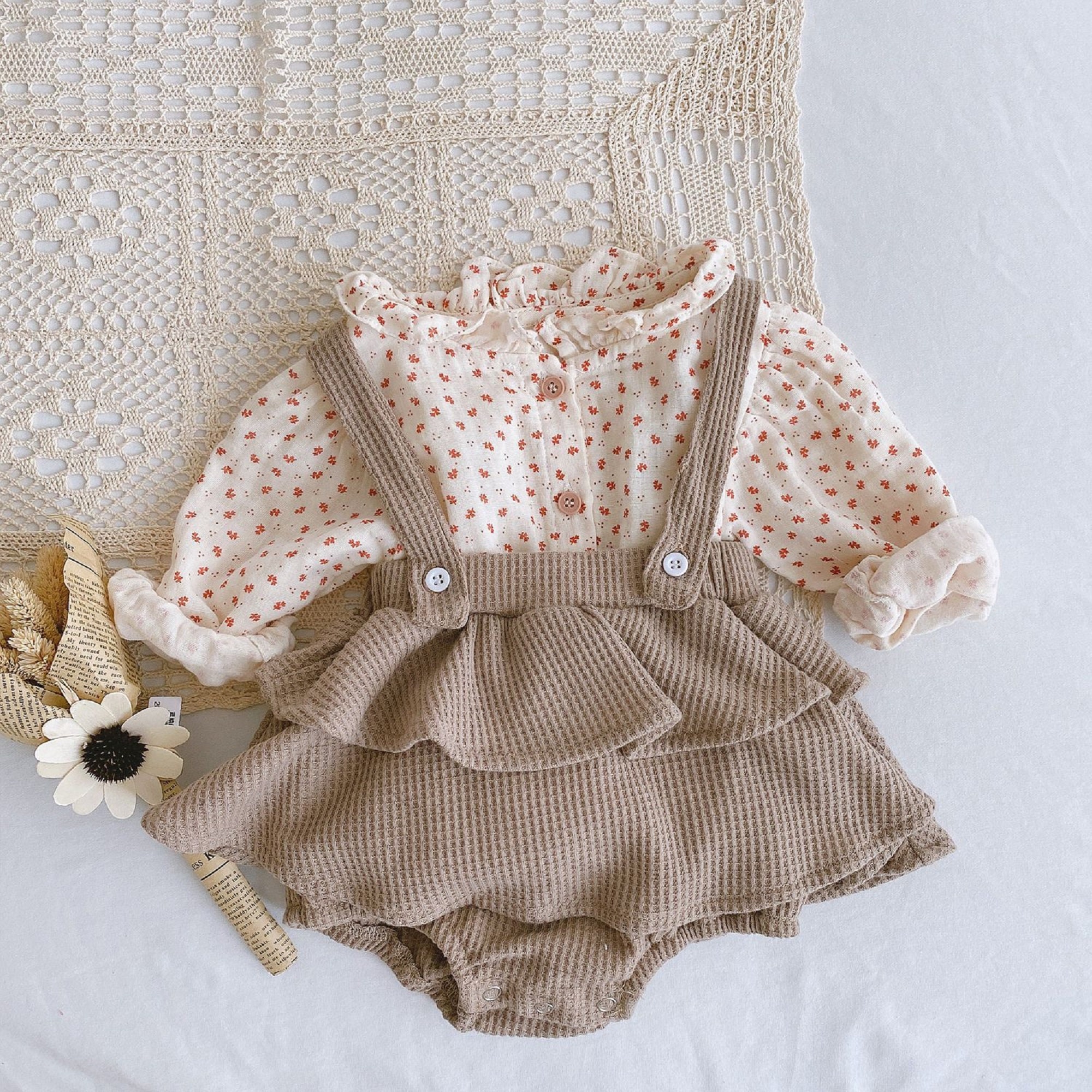 Eqenkely Baby Mädchen Set 3-teilig - Blumen Strampler + Overall + Stirnband 0-18 Monate