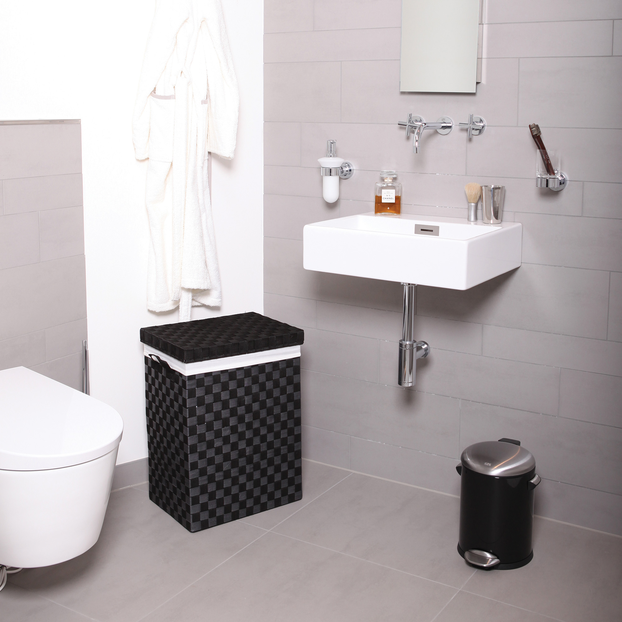 Maße: 21cm Durchmesser, 26cm hoch - kompakt aber mit 5 Litern Fassungsvermögen genau richtig für Bad oder Gäste-WC.