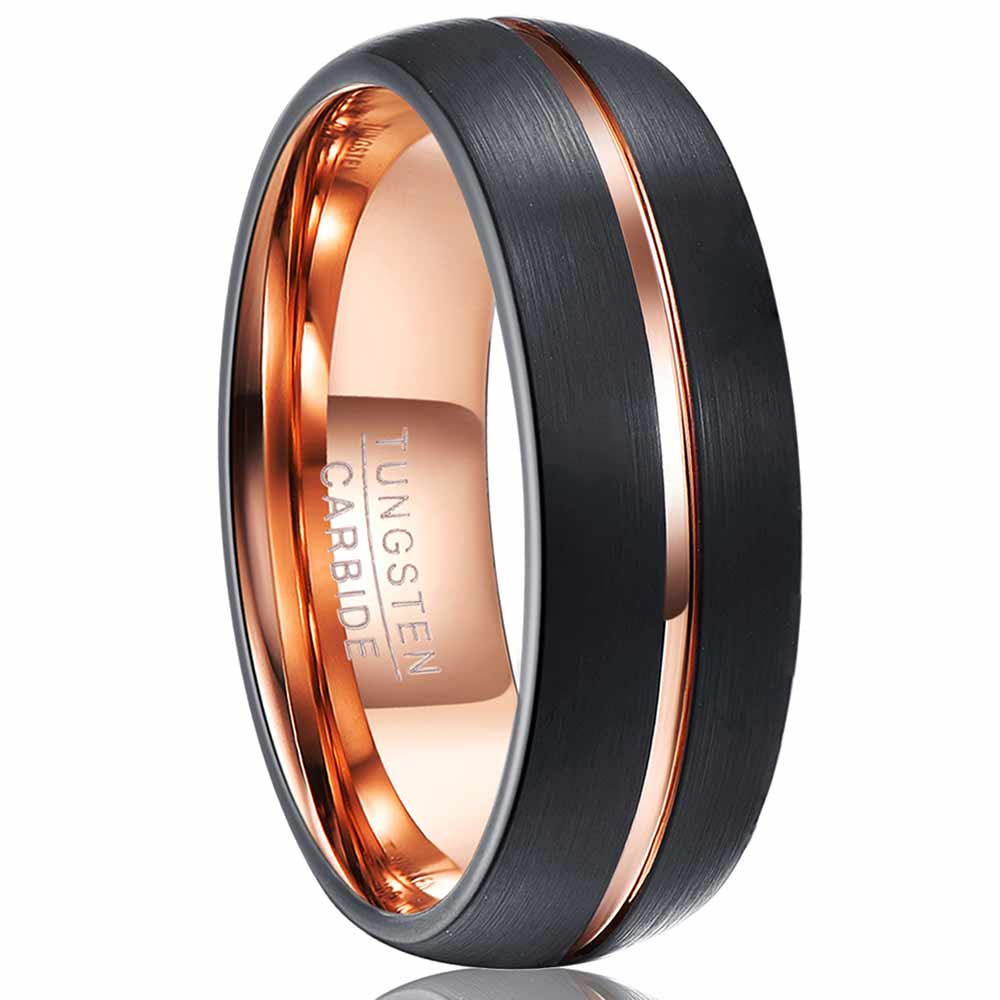 Vakki Wolfram Eheringe Gold Für Männer - 8 Mm Breite Mit Doppelrillen