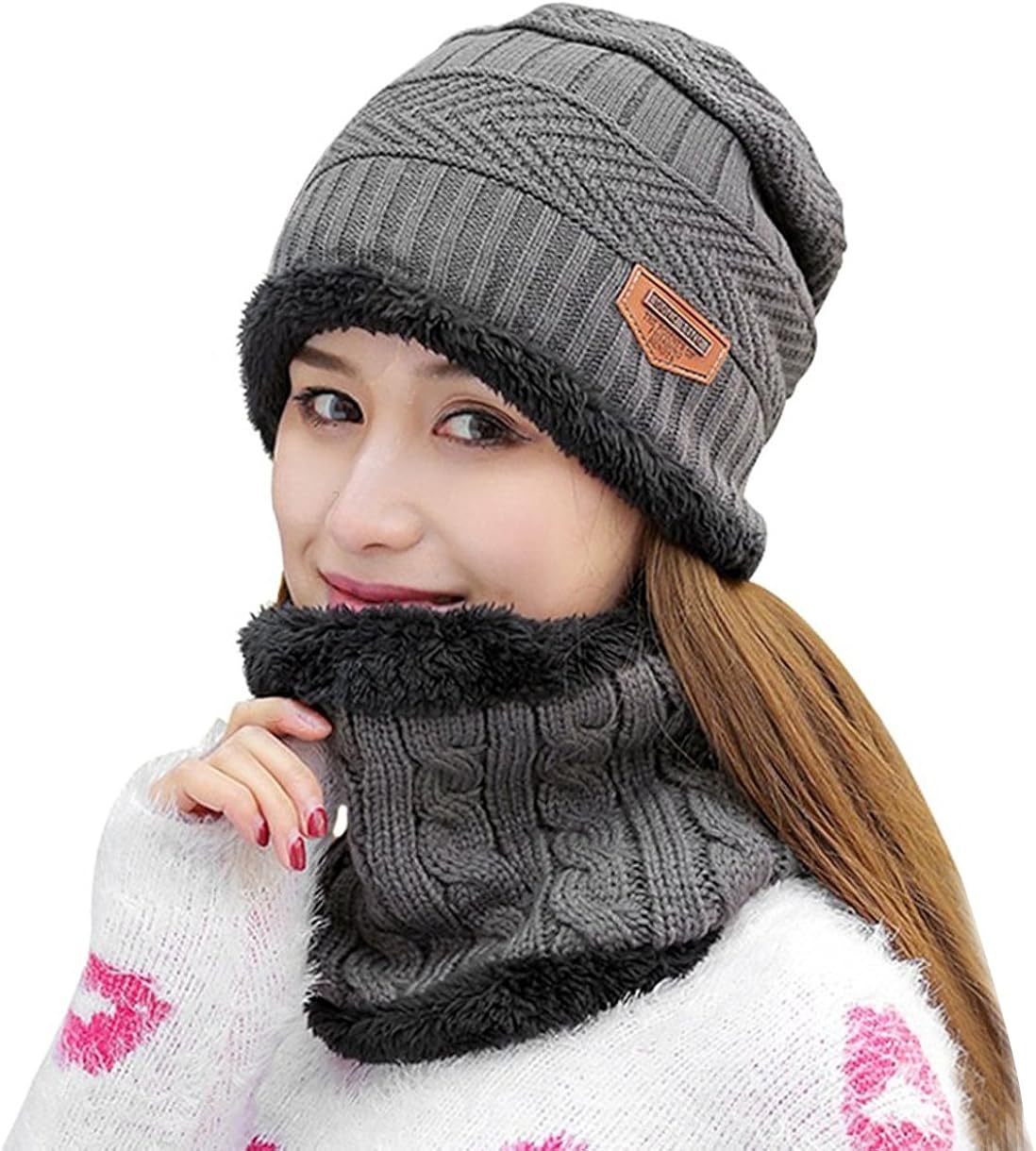 Cozy-Alarm! Dieses süße Mützen-Schal-Set von WANYI hält dich im Winter richtig kuschelig warm. Die Slouchy-Mütze hat ein weiches Innenfutter und ist super elastisch - passt also auf die meisten Kopfgrößen.