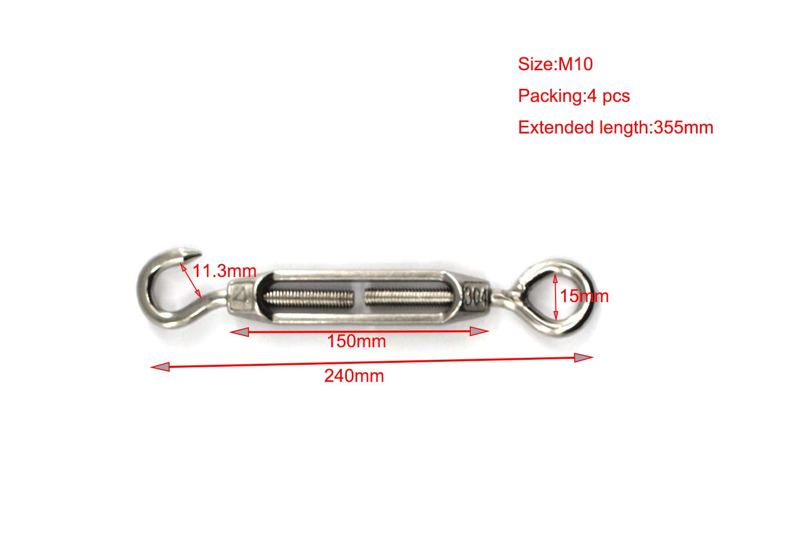 CNCYEAH 4x M10 Spannschloss Edelstahl 304 - Verstellbare Haken-Öse Seilspanner Für Sonnensegel