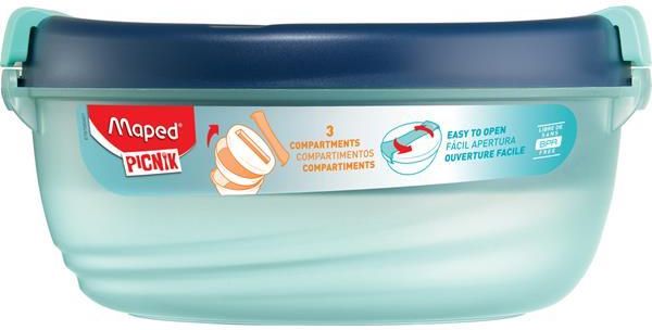 All-in-One für unterwegs! Die MAPED PICNIK Lunch-Bowl hat 1,4 Liter Fassungsvermögen und bietet mit 3 Fächern plus integriertem Besteckfach im Deckel genug Platz für eine komplette Mahlzeit. Einfach den Deckel drehen - schon ist sie auf oder zu. Super praktisch! Spülmaschinenfest und mikrowellengeeignet, also perfekt für Schule, Büro oder Picknick. Alles bleibt sauber getrennt, und dein Besteck ist immer griffbereit. Mit dieser Box isst du lecker und organisiert - wo auch immer du bist!