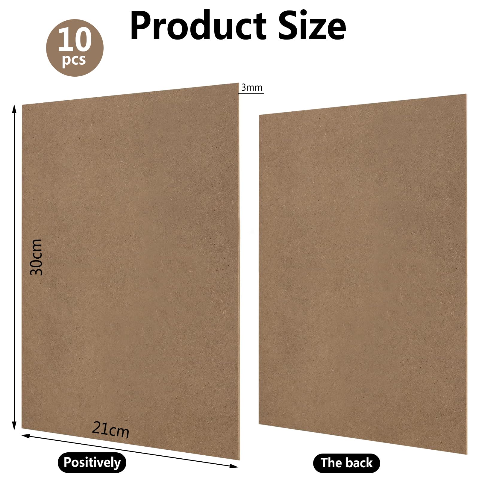 Perfekt für alle Bastelfans! Diese 15 schwarzen MDF-Platten im A4-Format (300x210x3mm) sind ideal für Laser-Cutter, CNC-Fräsen oder Laubsägearbeiten. Superglatte Oberfläche und Kanten - einfach zu schneiden und zu bearbeiten! 🎨\\n\\nDu kannst sie bemalen, beizen, schnitzen oder mit Stempeln verzieren. Perfekt für Modellbau, Durchbrucharbeiten oder zum Schutz von Fotos und Dokumenten. \\n\\nDie Platten sind reißfest und halten auch rauen Bedingungen stand. Aber Achtung: Nur für Innenbereich geeignet und nicht für Hämmer und Nägel! \\n\\n• 15 Stück A4 Platten\\n• 300x210x3mm\\n• Schwarz, glatte Oberfläche\\n• Für Laser & CNC\\n• Ideal für Bastelprojekte